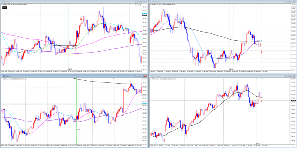 少し伸びた後損切りギリギリまで戻されましたが、その後利確目標まで再下落しました。